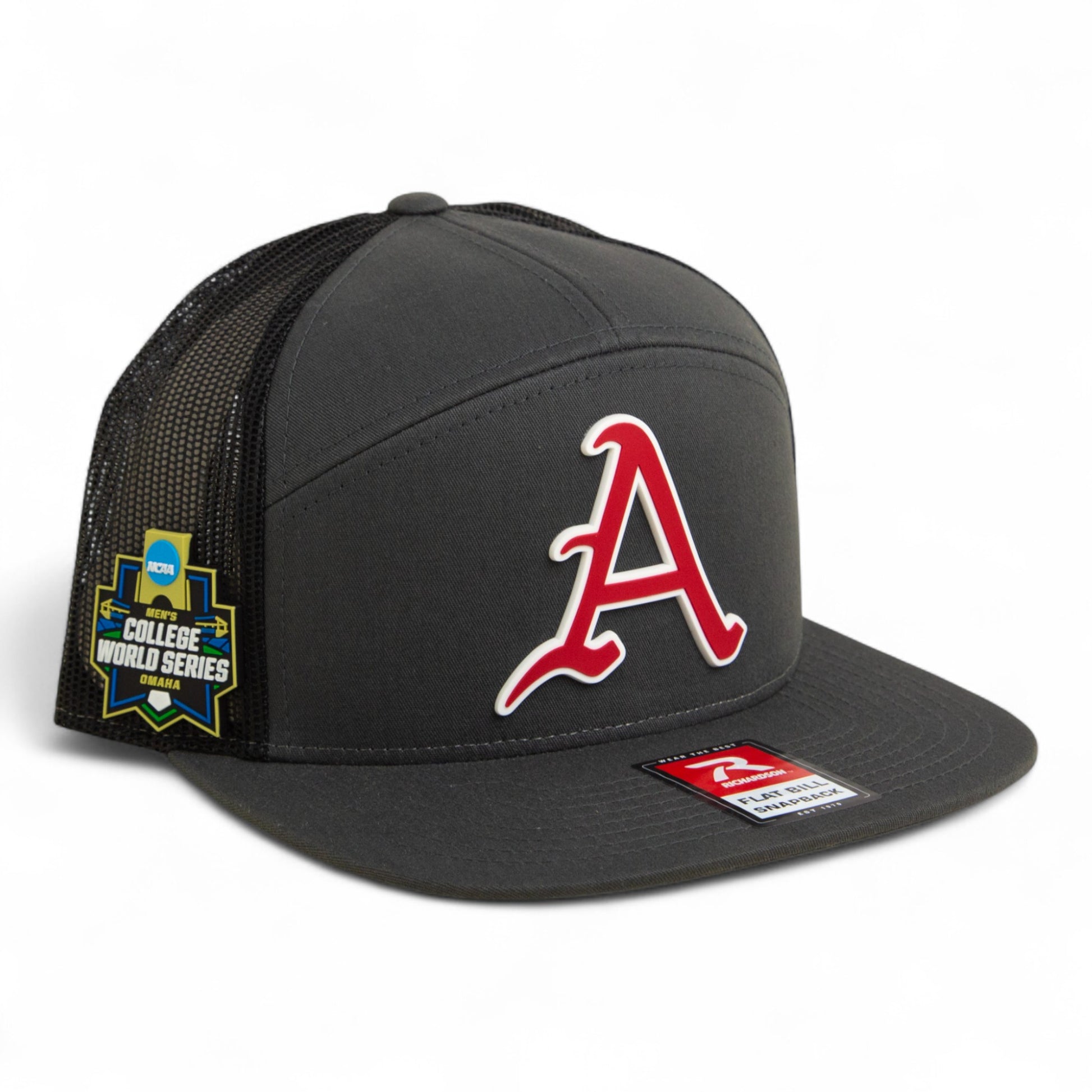 Arkansas Razorbacks Baseball Script A 2025 College World Series 3D Snapback Seven-Panel Flat Bill Trucker Hat- Charcoal/ Black