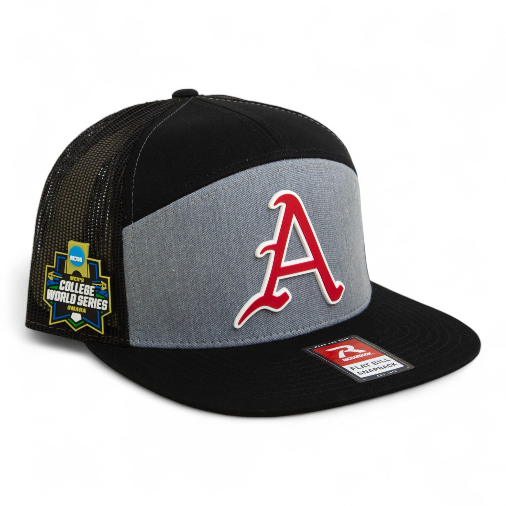 Arkansas Razorbacks Baseball Script A 2025 College World Series 3D Snapback Seven-Panel Flat Bill Trucker Hat- Heather Grey/ Black