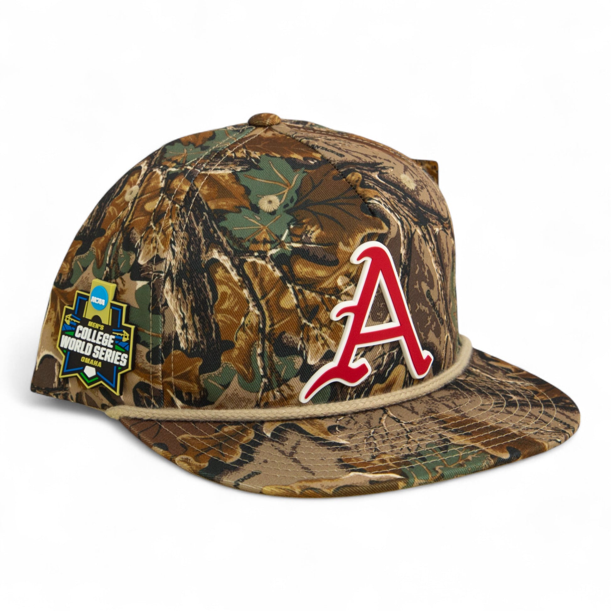Arkansas Razorbacks Baseball Script A 2025 College World Series 3D Umpqua Rope Hat- Realtree Advantage/ Khaki