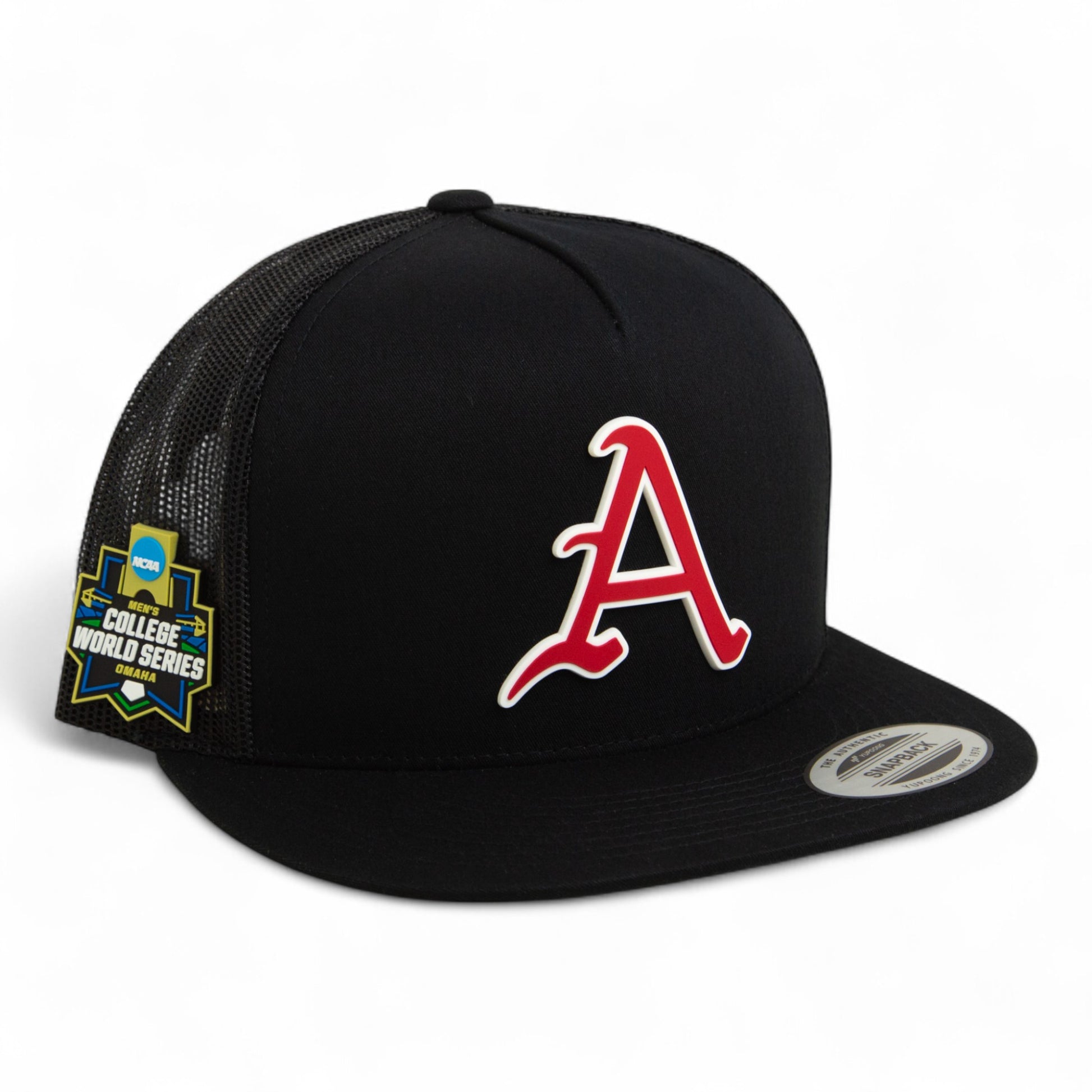 Arkansas Razorbacks Baseball Script A 2025 College World Series 3D YP Snapback Flat Bill Trucker Hat- Black