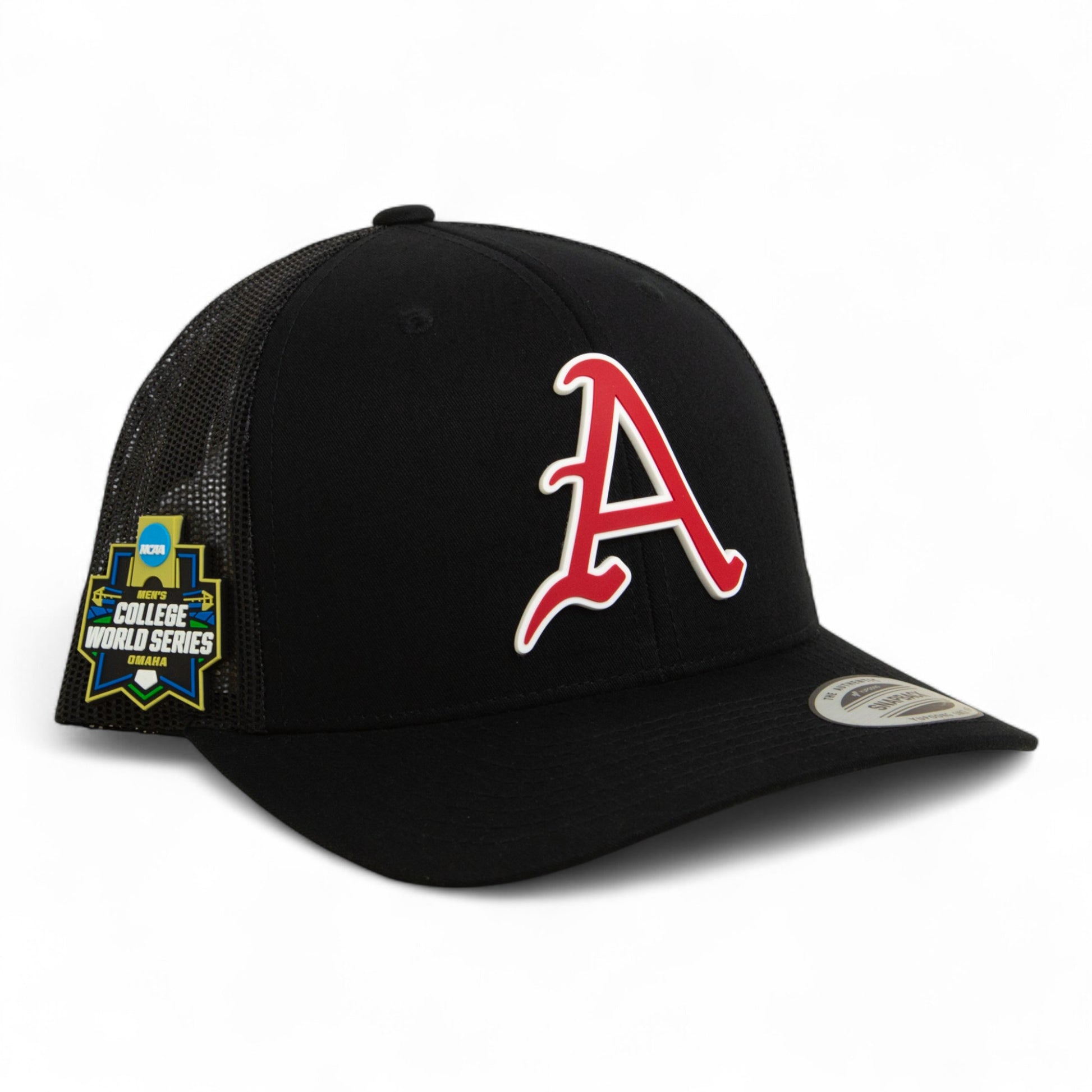 Arkansas Razorbacks Baseball Script A 2025 College World Series 3D YP Snapback Trucker Hat- Black