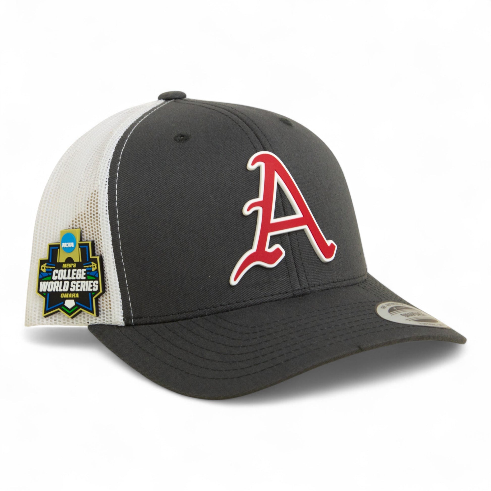 Arkansas Razorbacks Baseball Script A 2025 College World Series 3D YP Snapback Trucker Hat- Charcoal/ White