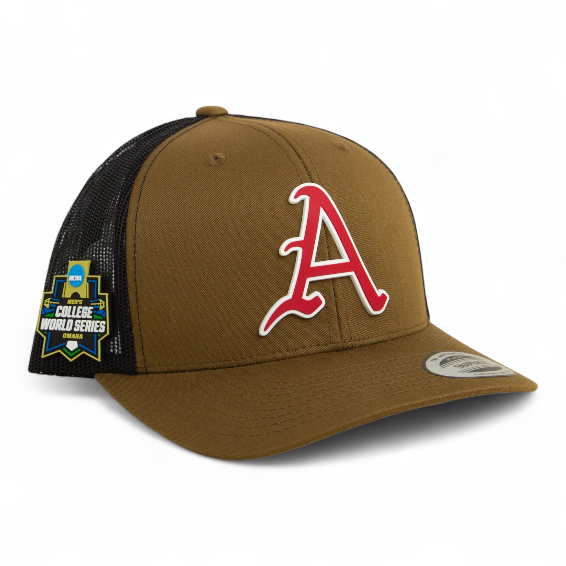Arkansas Razorbacks Baseball Script A 2025 College World Series 3D YP Snapback Trucker Hat- Coyote/ Black
