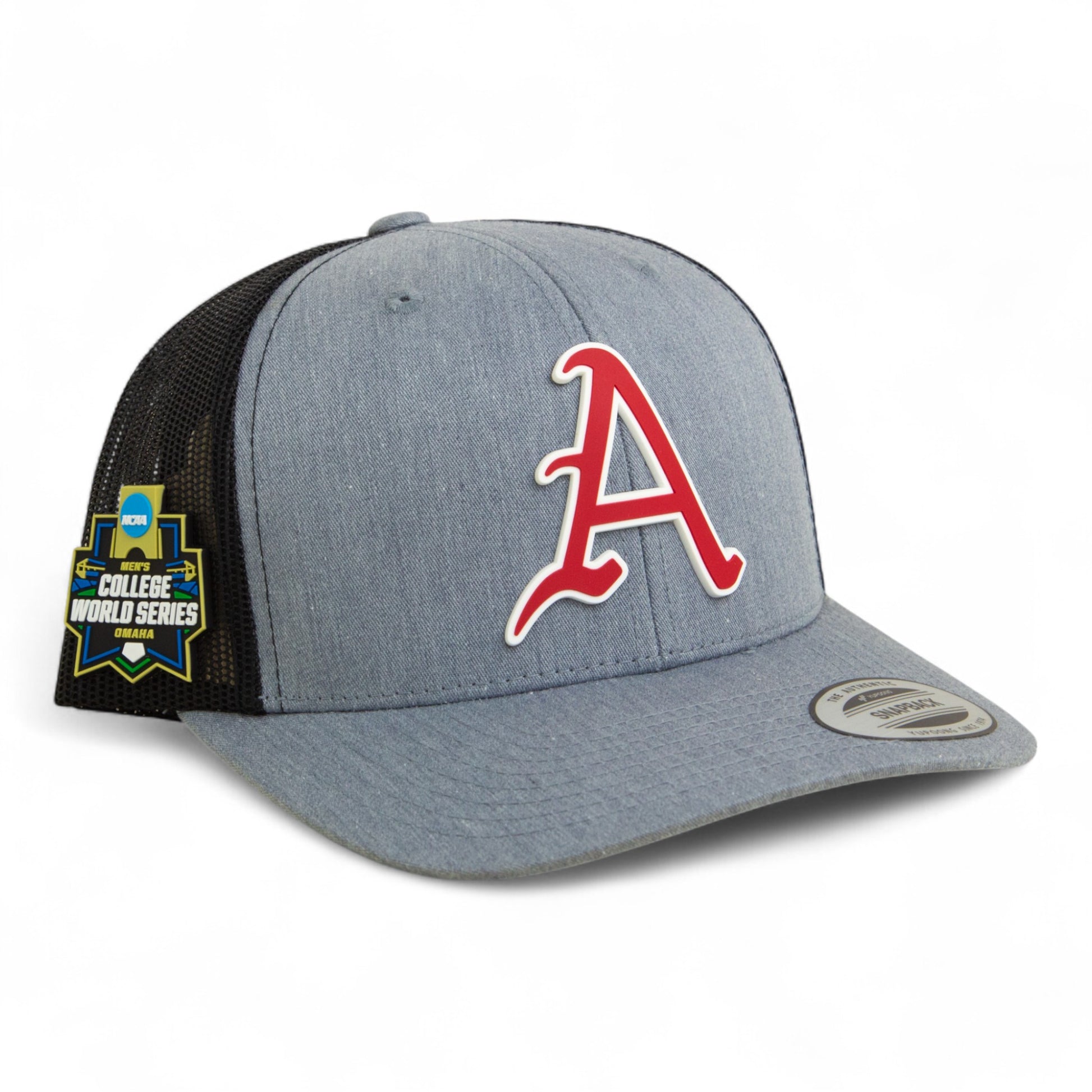 Arkansas Razorbacks Baseball Script A 2025 College World Series 3D YP Snapback Trucker Hat- Heather Grey/ Black