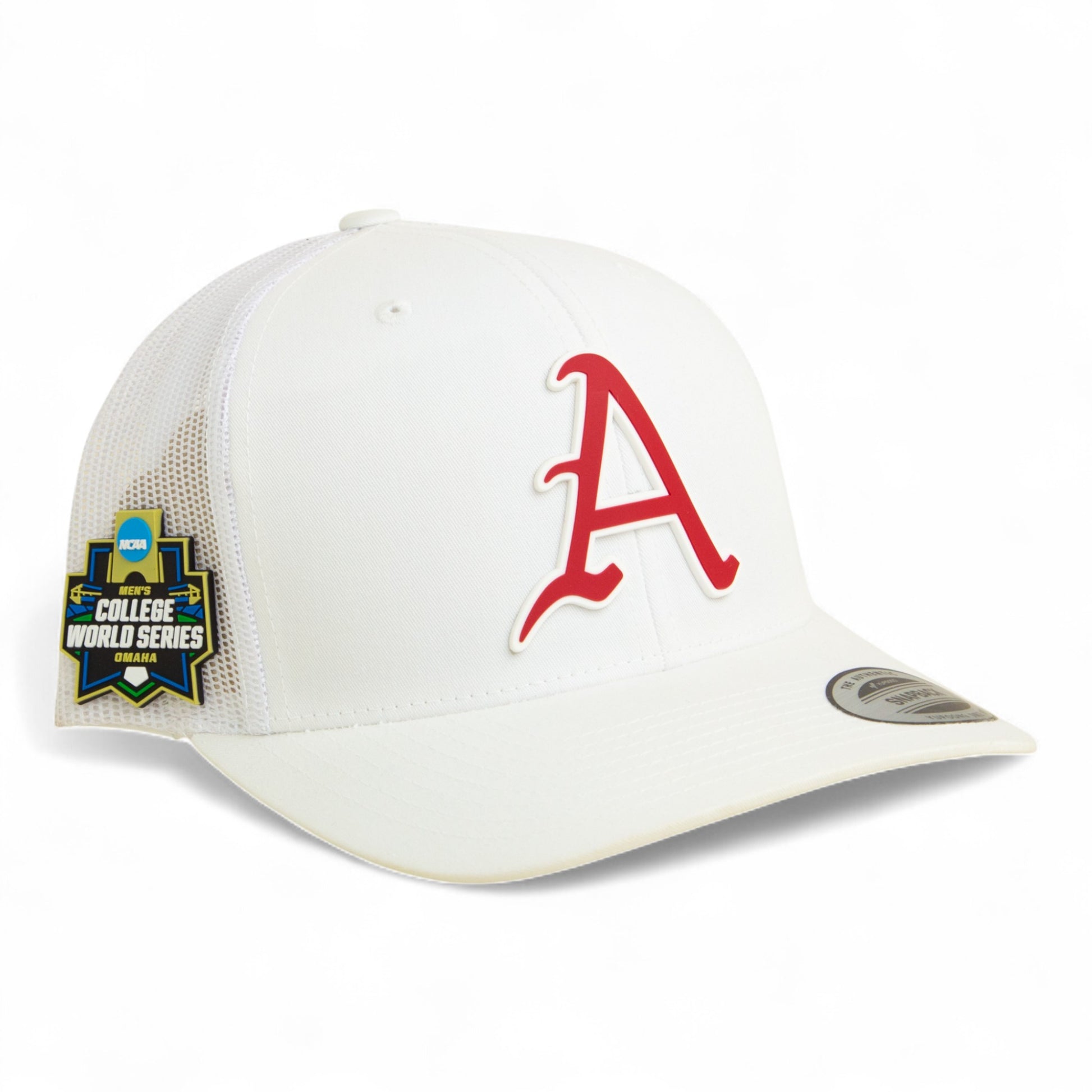 Arkansas Razorbacks Baseball Script A 2025 College World Series 3D YP Snapback Trucker Hat- White