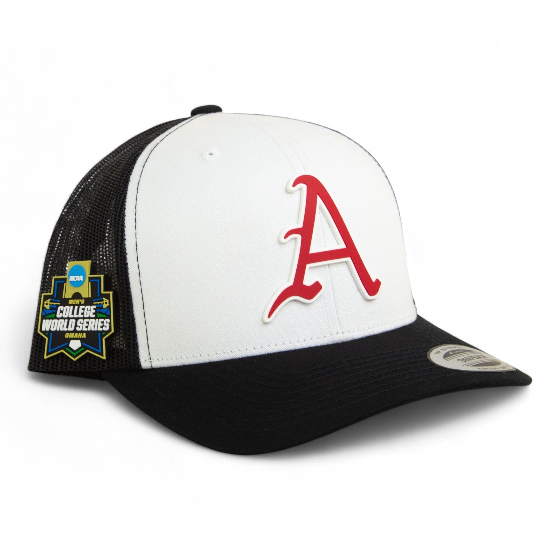 Arkansas Razorbacks Baseball Script A 2025 College World Series 3D YP Snapback Trucker Hat- White/ Black