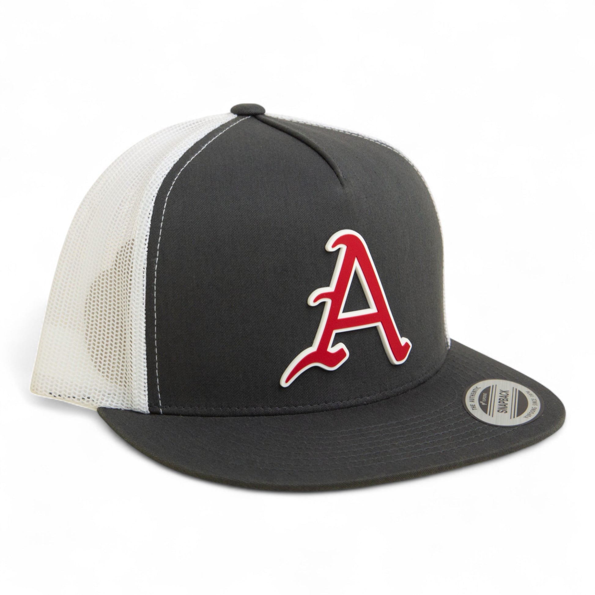 Arkansas Razorbacks Baseball Script A 3D YP Snapback Flat Bill Trucker Hat- Charcoal/ White