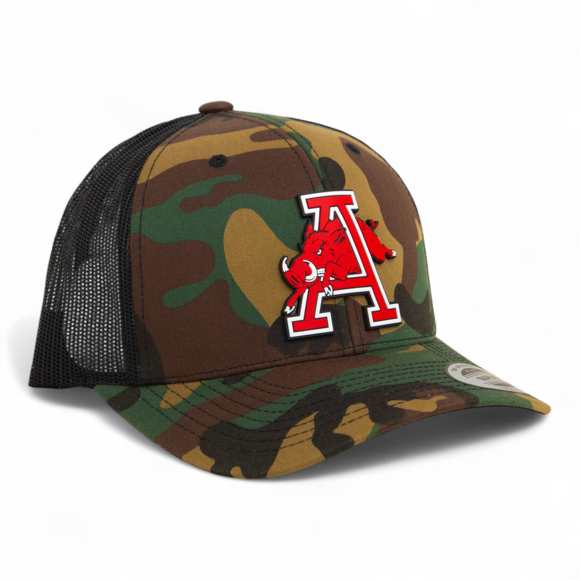 Arkansas Razorbacks Jumping Hog 3D YP Snapback Trucker Hat- Army Camo/ Black