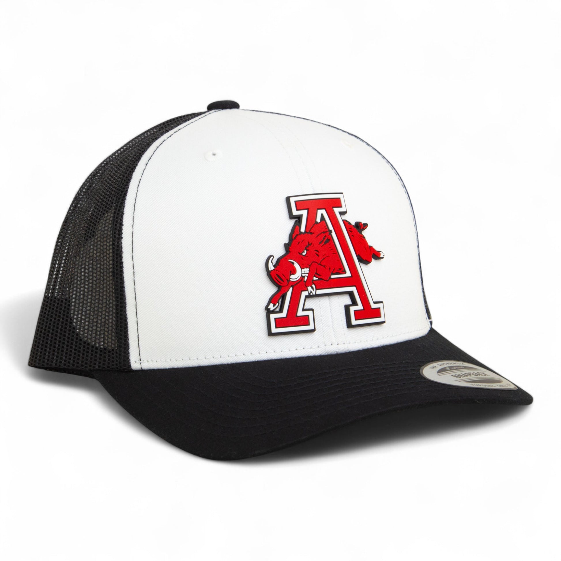 Arkansas Razorbacks Jumping Hog 3D YP Snapback Trucker Hat- White/ Black