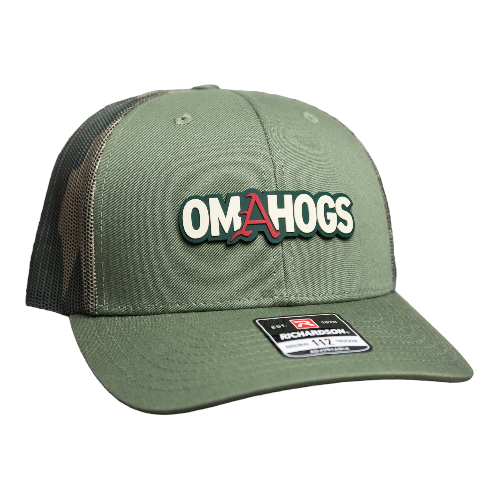 Arkansas Razorbacks OMAHOGS 3D Snapback Trucker Hat- Loden/ Green Camo