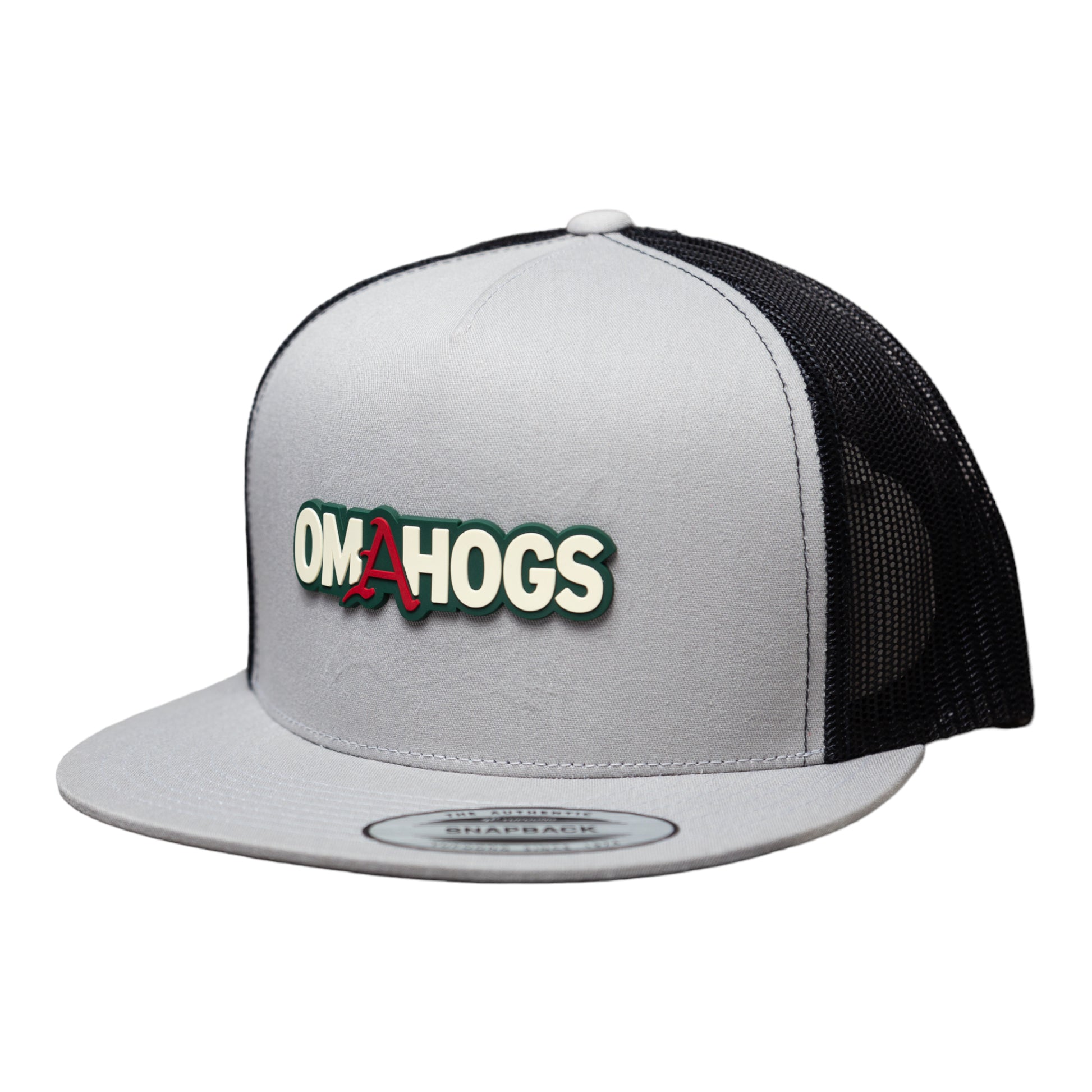 Arkansas Razorbacks OMAHOGS YP Snapback Flat Bill Trucker Hat- Silver/ Black