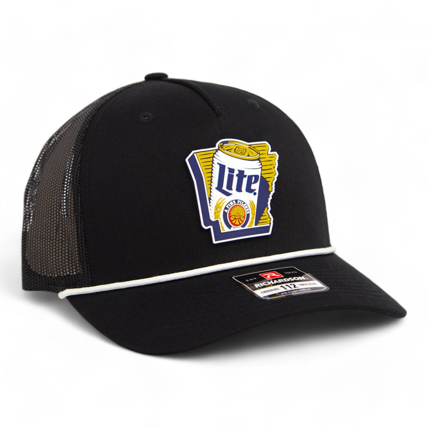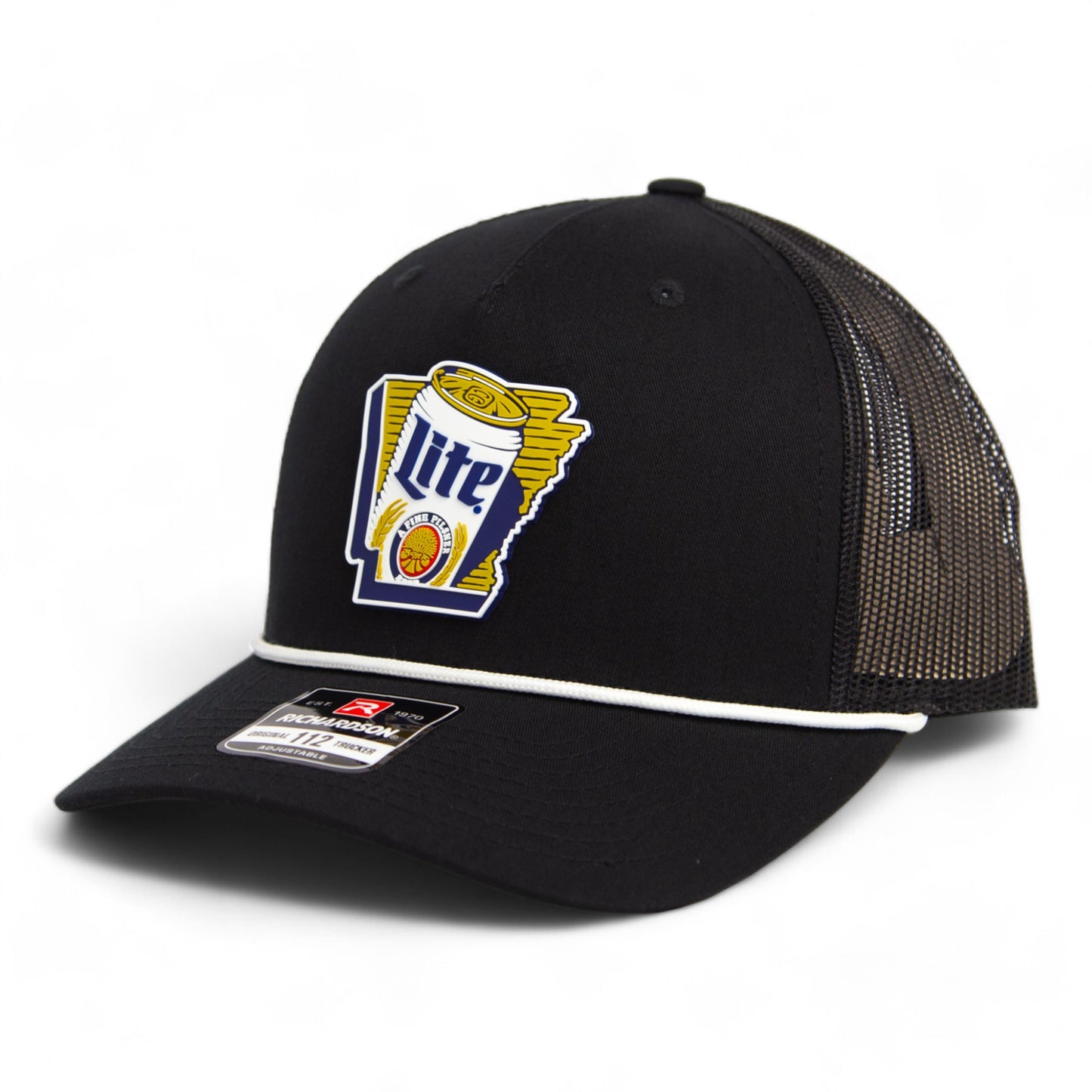 It's Miller Time Arkansas 3D Snapback Trucker Rope Hat- Black/ White