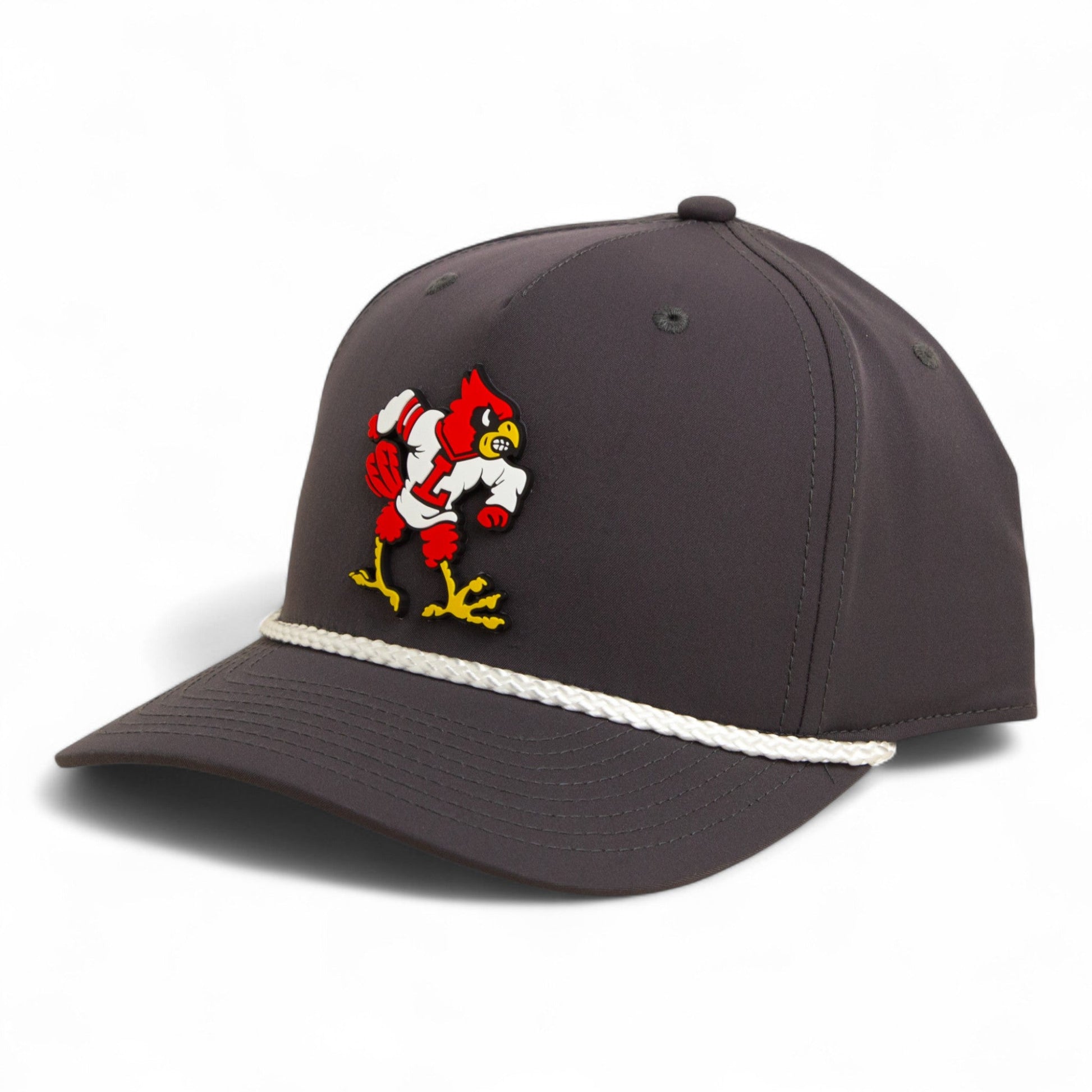 Louisville Cardinals Retro 2025 College World Series 3D Five Panel Classic Rope Hat- Charcoal/ White