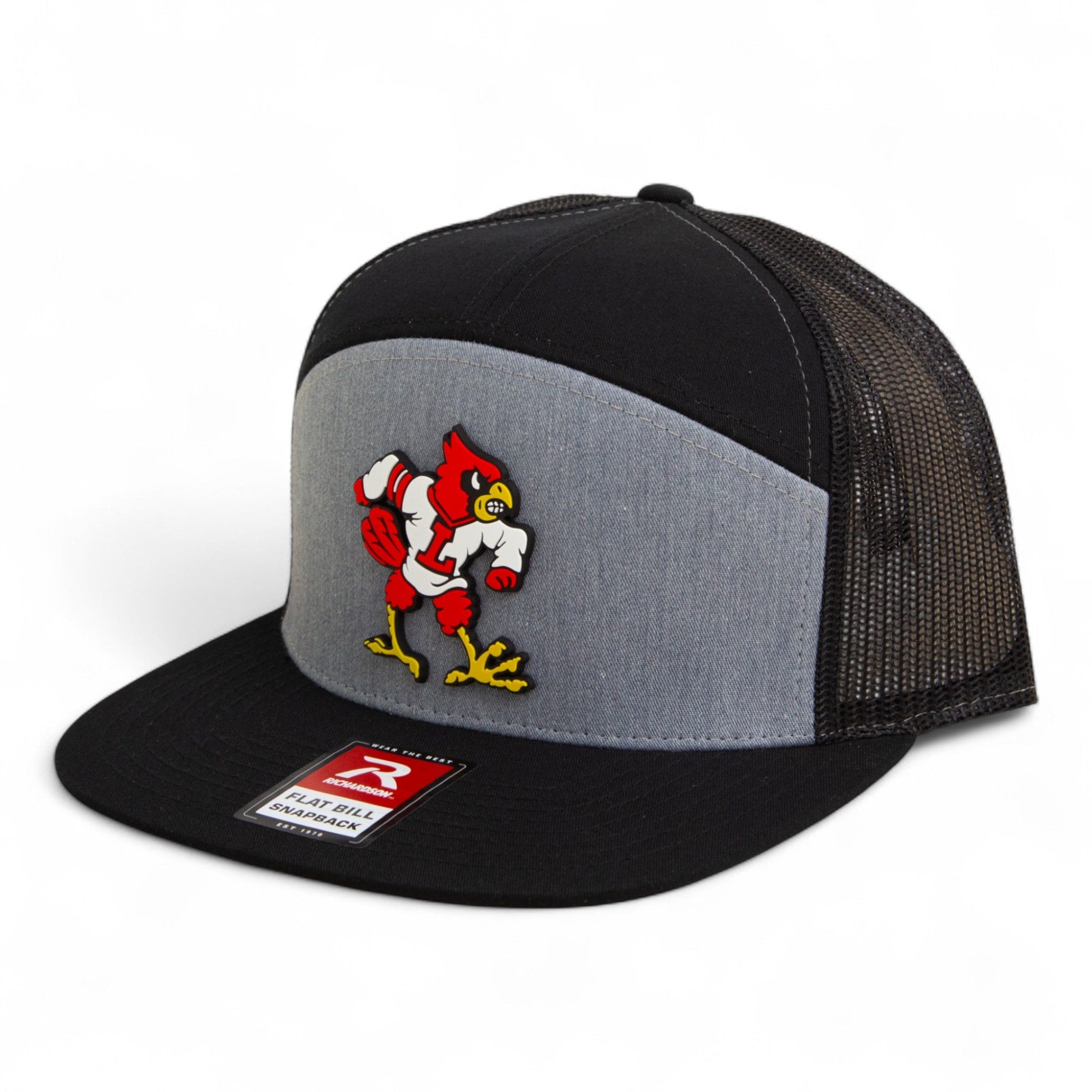 Louisville Cardinals Retro 2025 College World Series 3D Snapback Seven-Panel Flat Bill Trucker Hat- Heather Grey/ Black