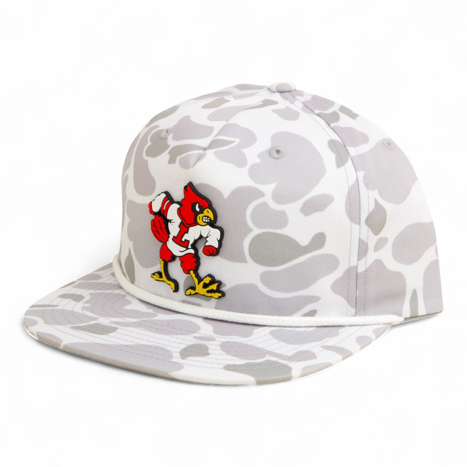 Louisville Cardinals Retro 2025 College World Series 3D Umpqua Rope Hat- Blizzard Duck Camo/ White
