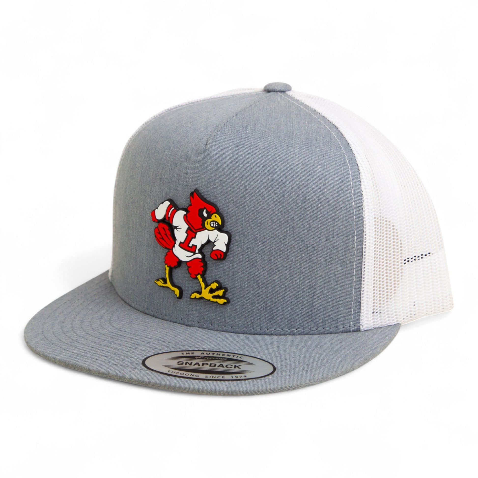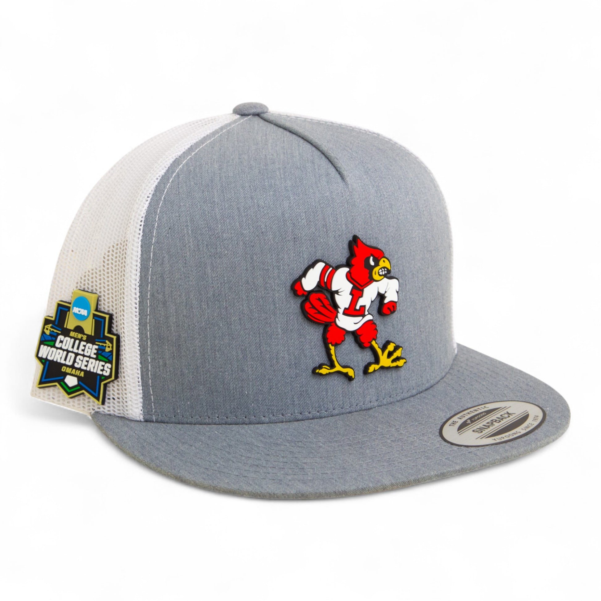Louisville Cardinals Retro 2025 College World Series 3D YP Snapback Flat Bill Trucker Hat- Heather Grey/ White