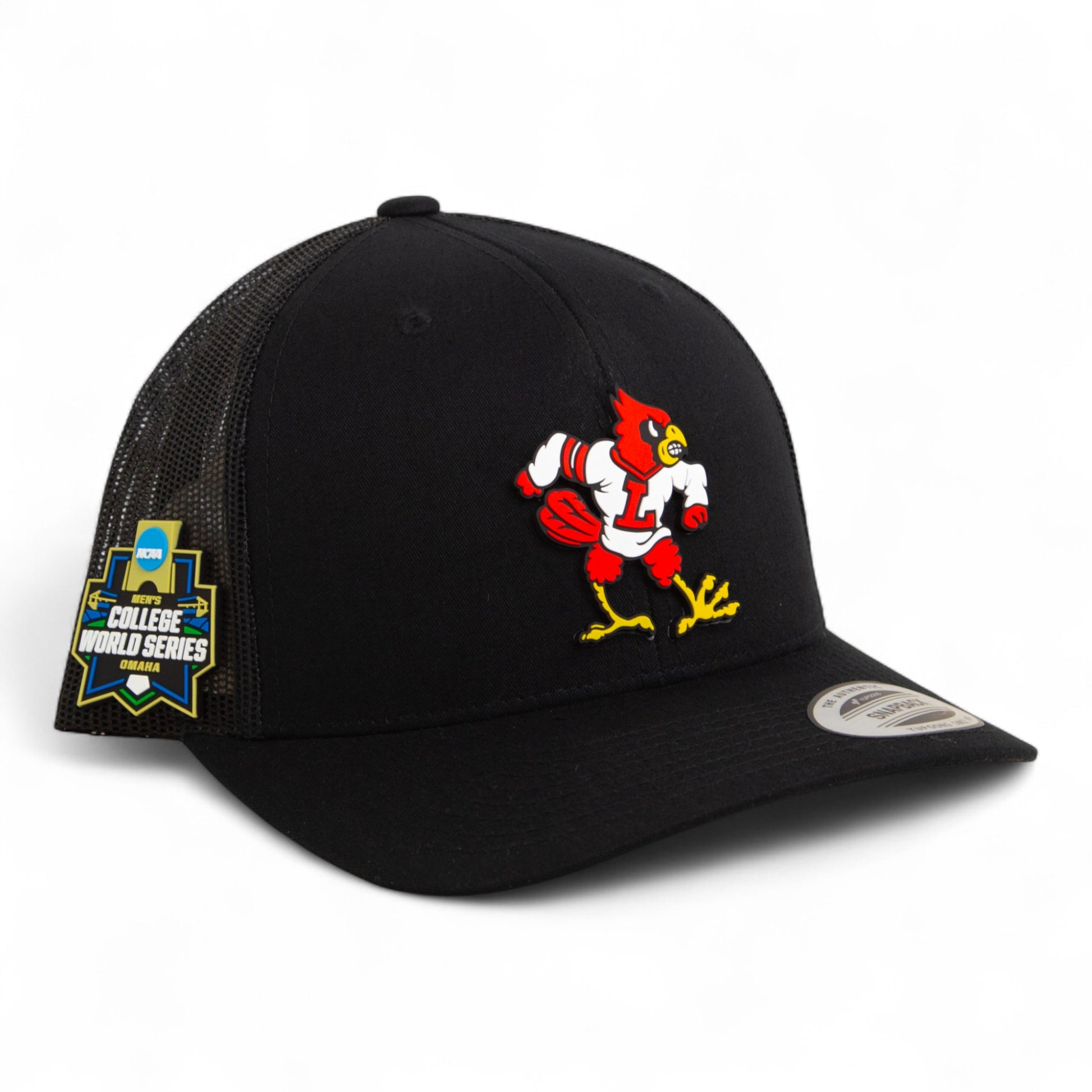 Louisville Cardinals Retro 2025 College World Series 3D YP Snapback Trucker Hat- Black