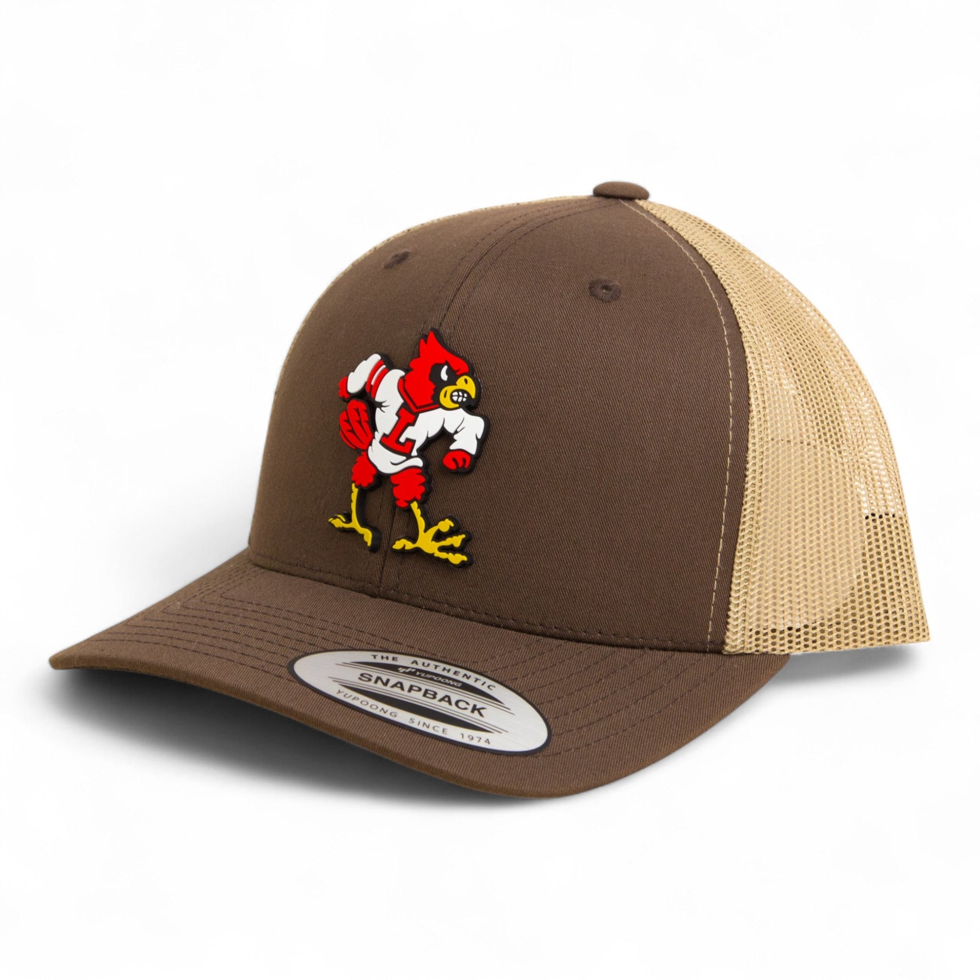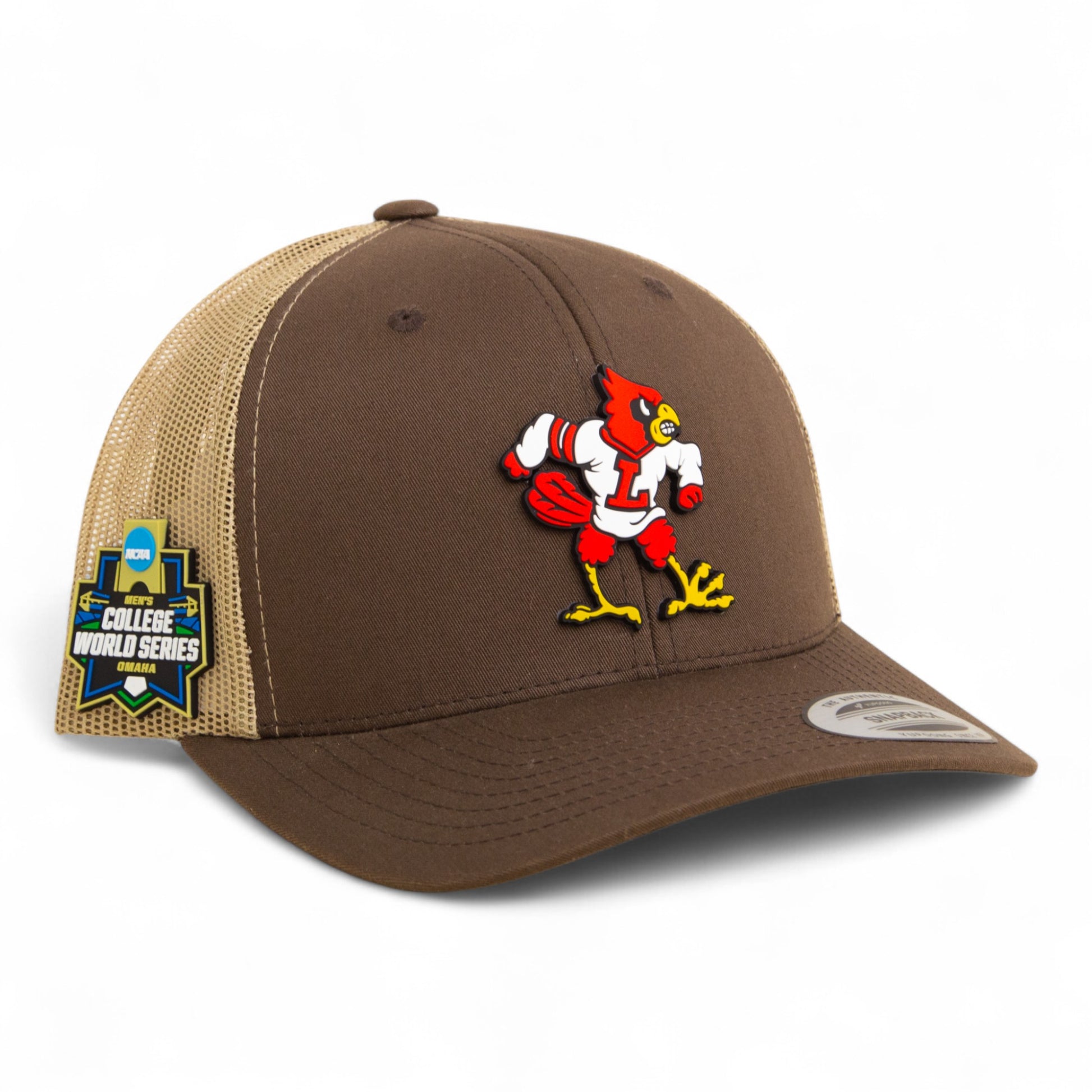 Louisville Cardinals Retro 2025 College World Series 3D YP Snapback Trucker Hat- Brown/ Tan