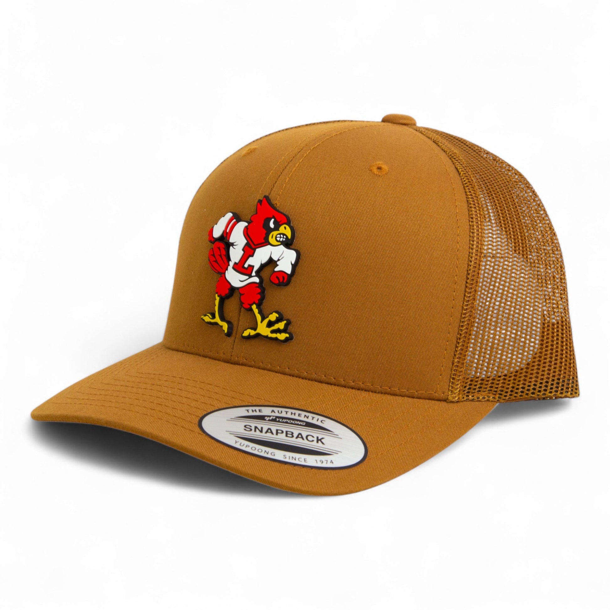 Louisville Cardinals Retro 2025 College World Series 3D YP Snapback Trucker Hat- Caramel