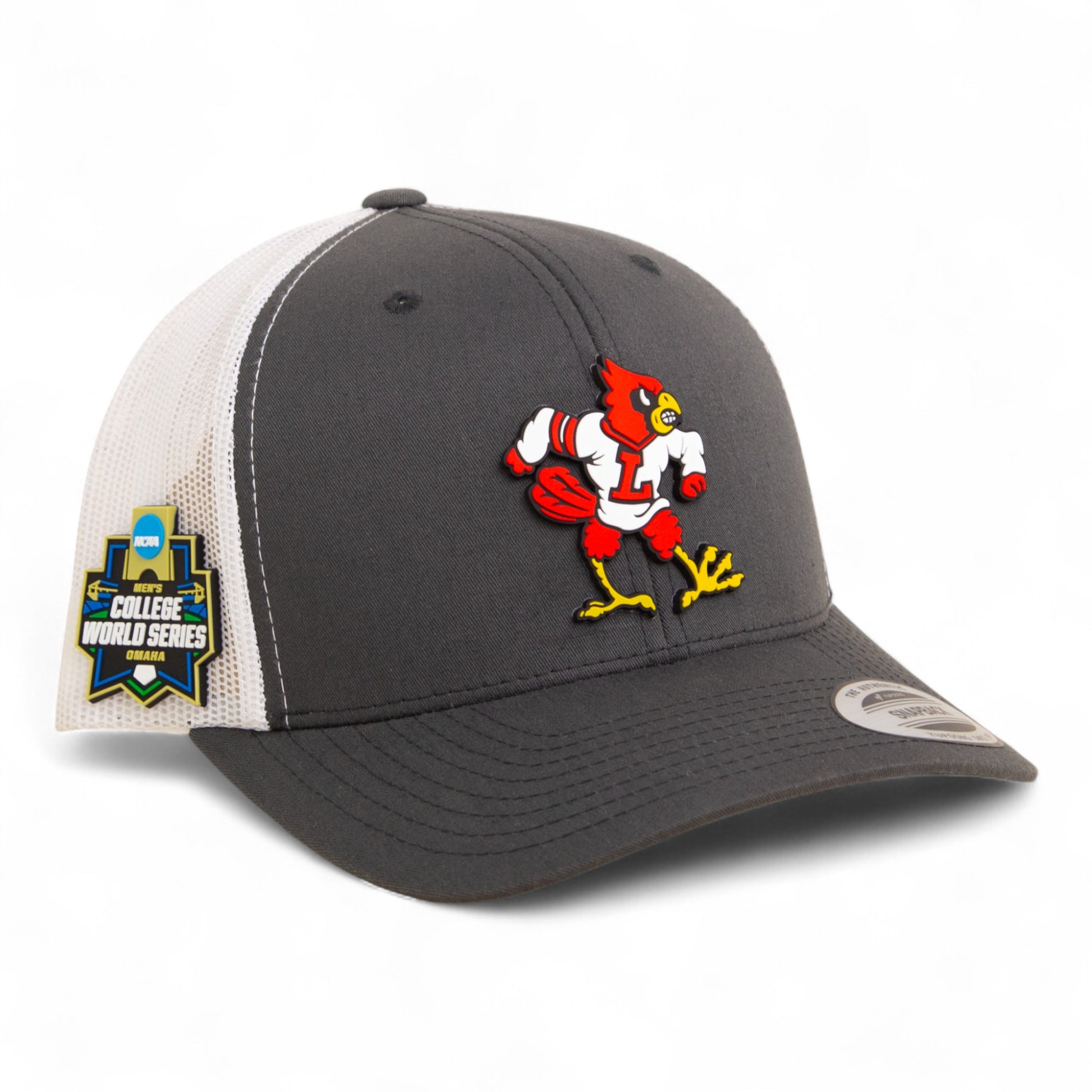 Louisville Cardinals Retro 2025 College World Series 3D YP Snapback Trucker Hat- Charcoal/ White
