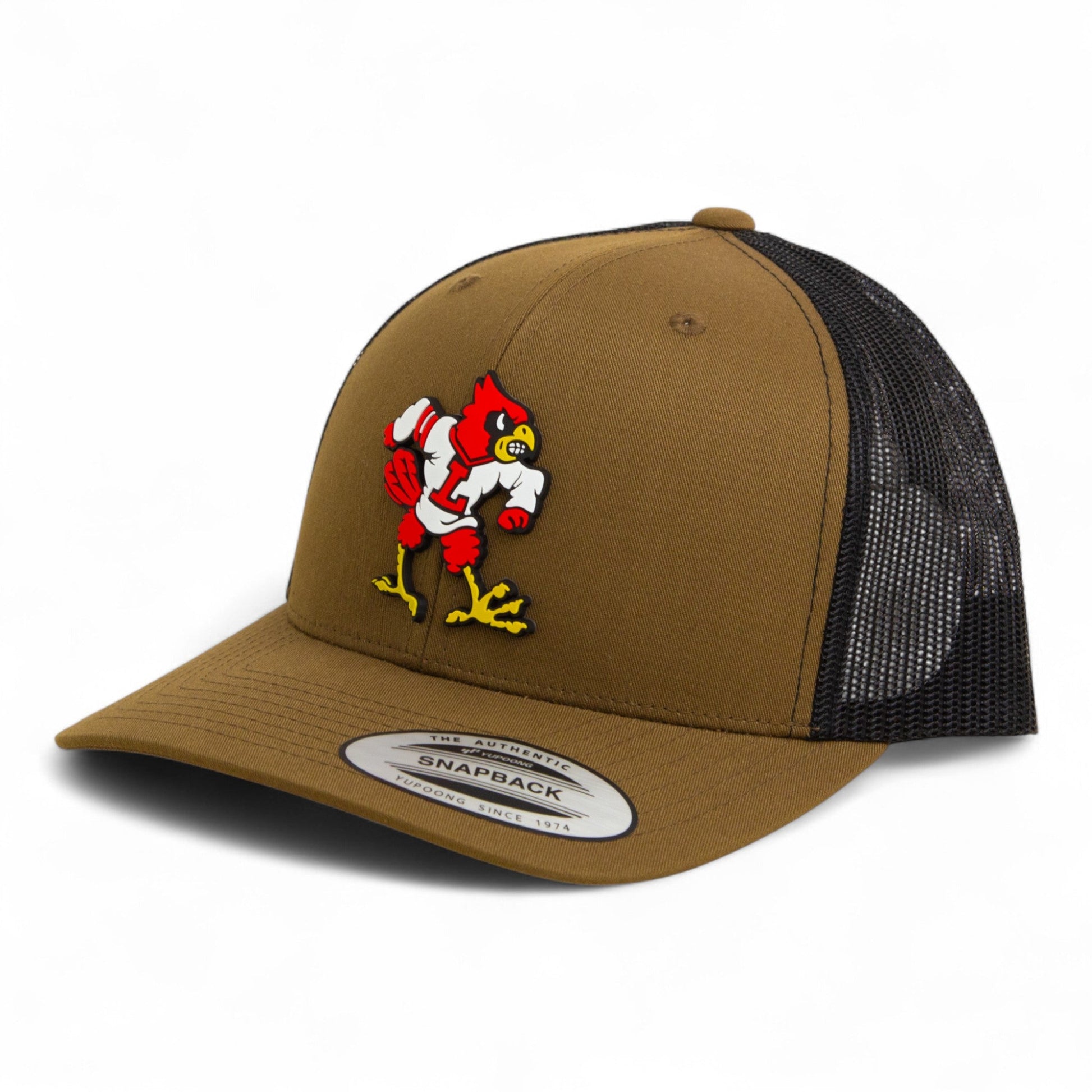 Louisville Cardinals Retro 2025 College World Series 3D YP Snapback Trucker Hat- Coyote/ Black