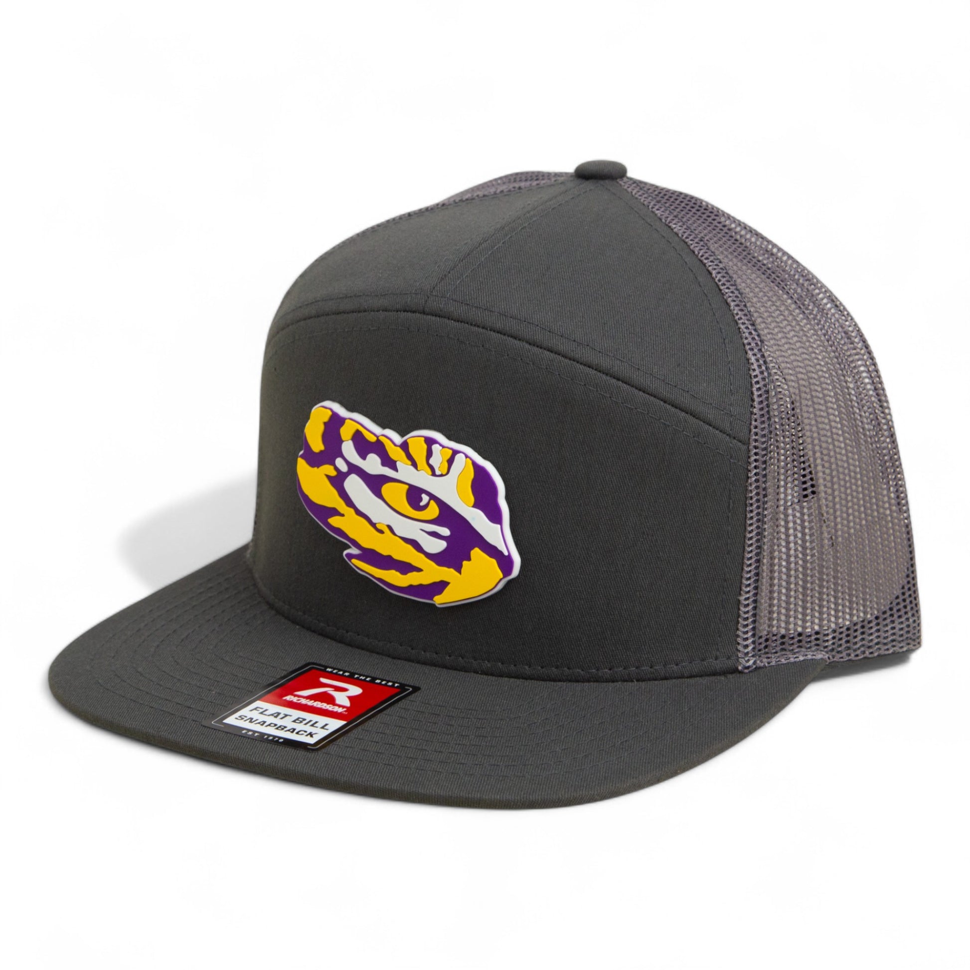 LSU Tiger Eye 3D Snapback Seven-Panel Flat Bill Trucker Hat- Charcoal