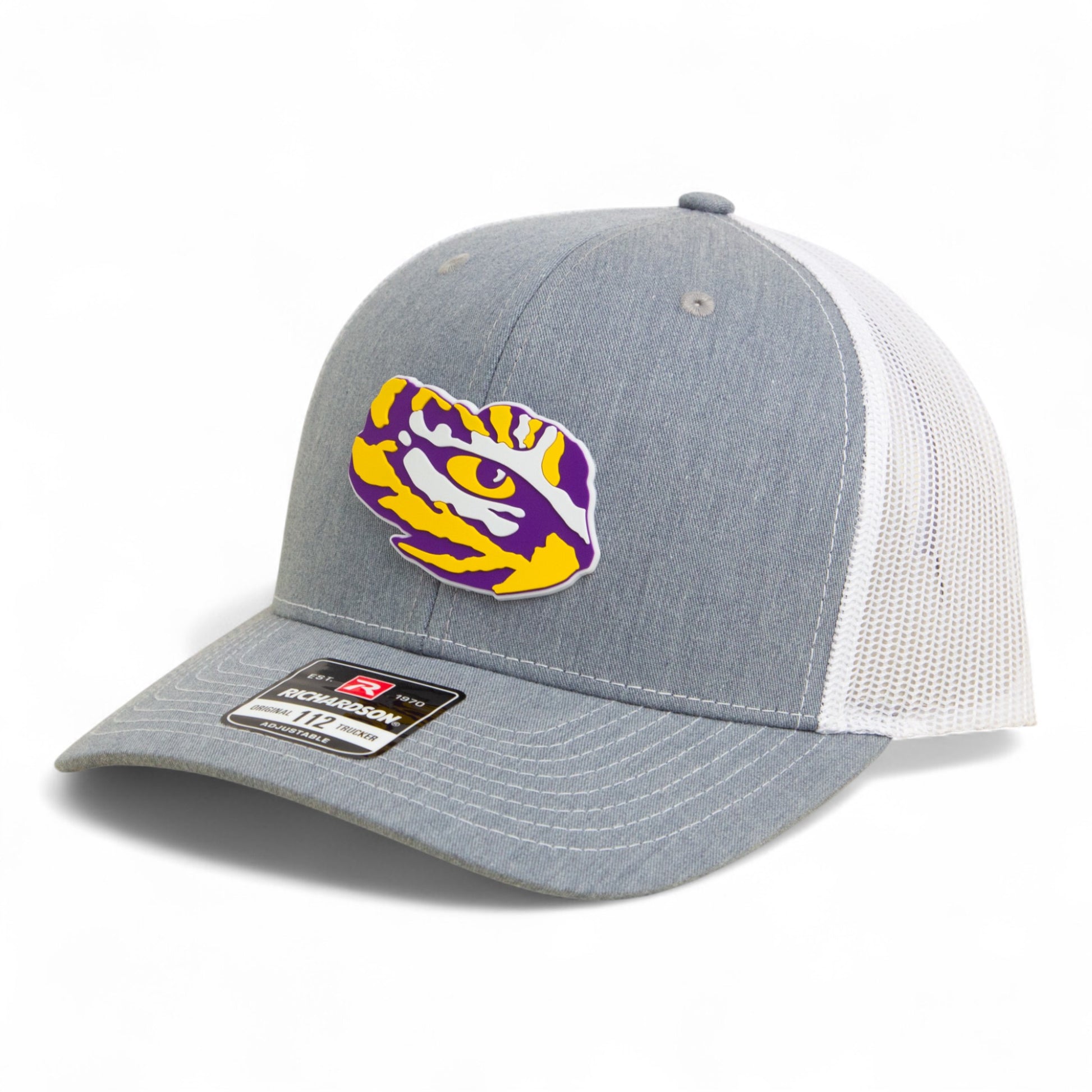 LSU Tiger Eye 3D Snapback Trucker Hat- Heather Grey/ White