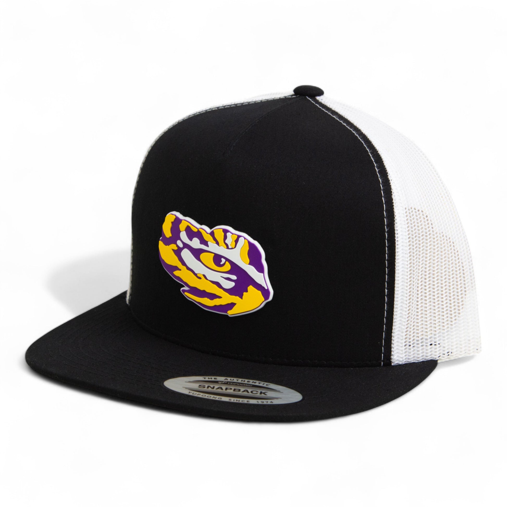 LSU Tiger Eye 3D YP Snapback Flat Bill Trucker Hat- Black/ White