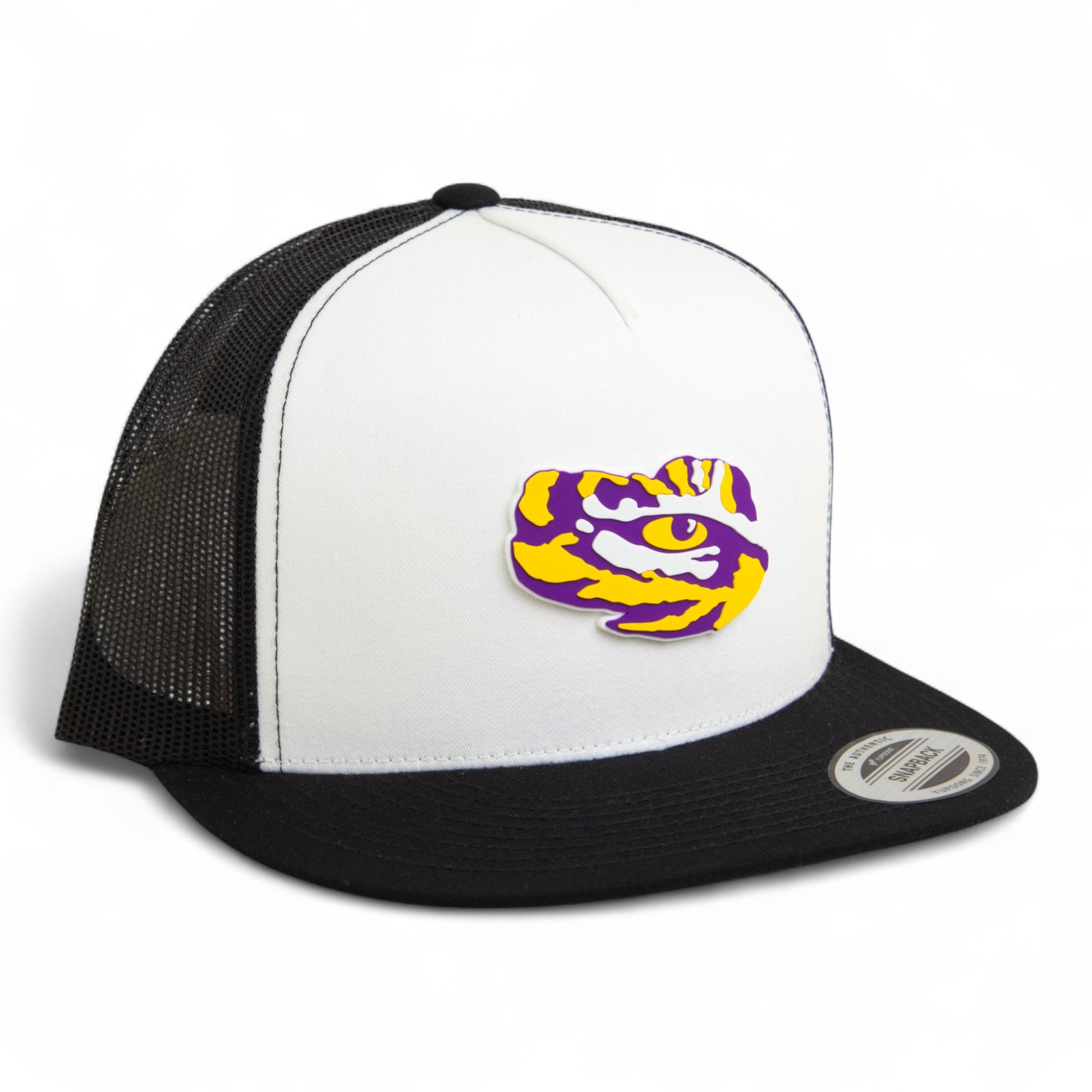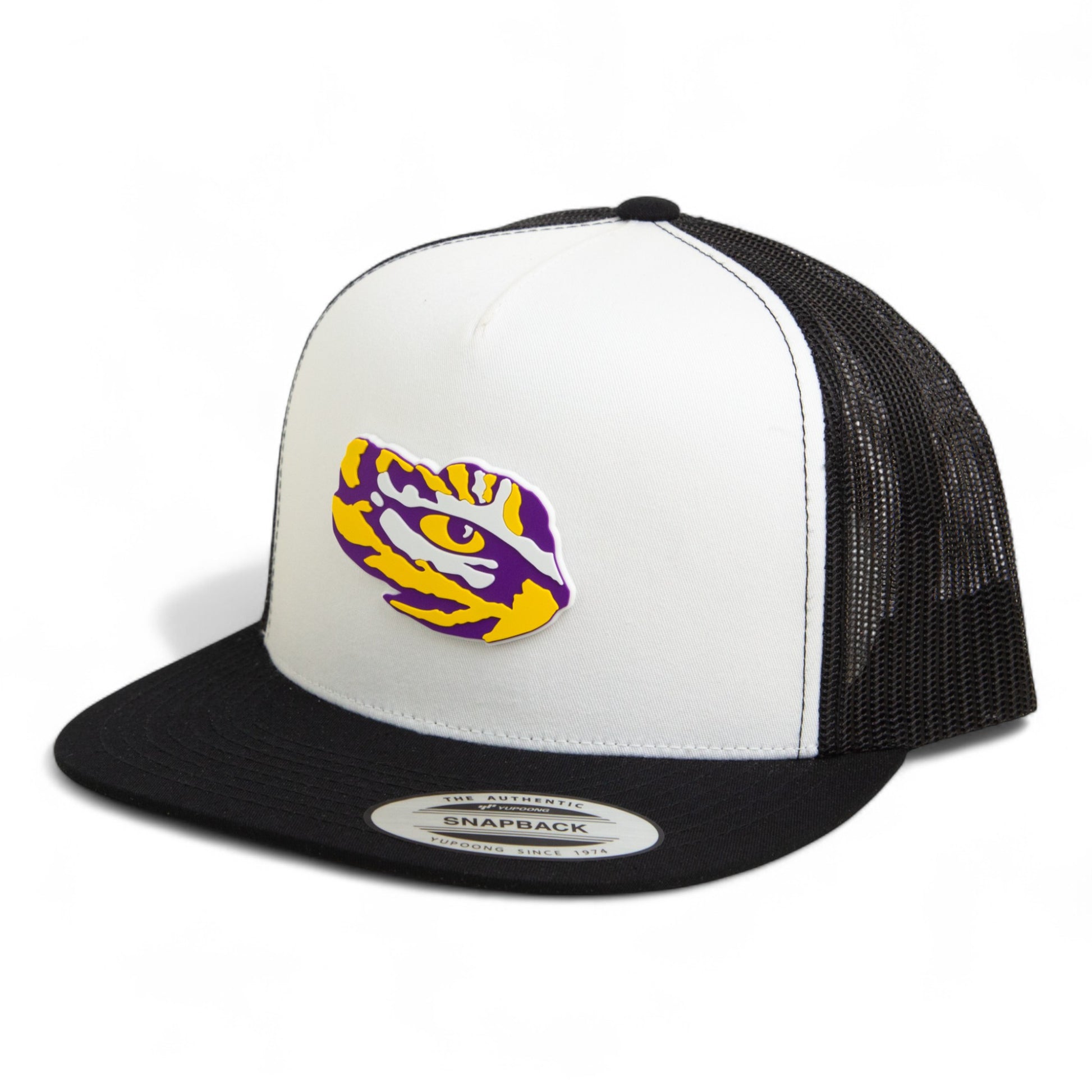 LSU Tiger Eye 3D YP Snapback Flat Bill Trucker Hat- White/ Black