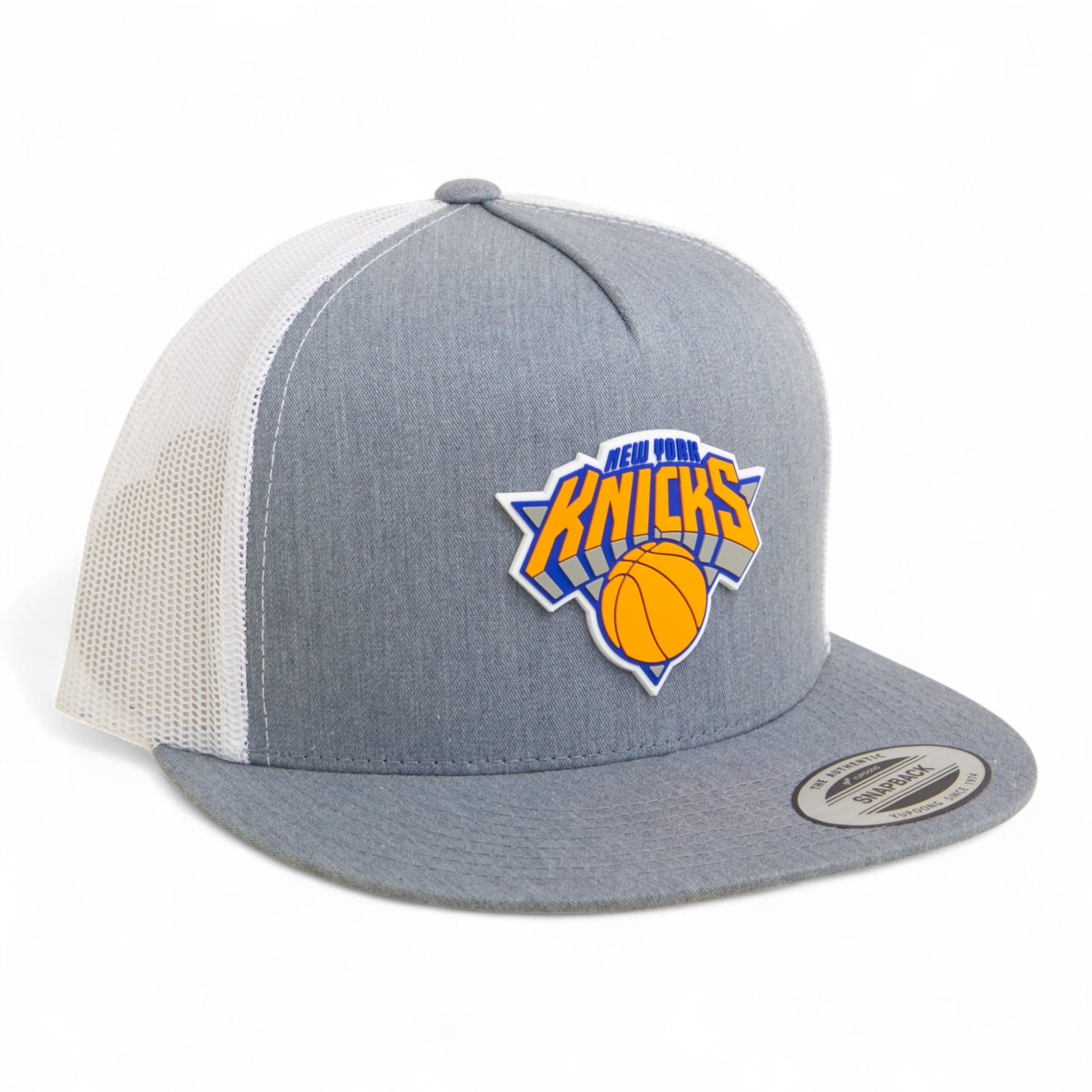 New York Knicks 3D YP Snapback Flat Bill Trucker Hat- Heather Grey/ White