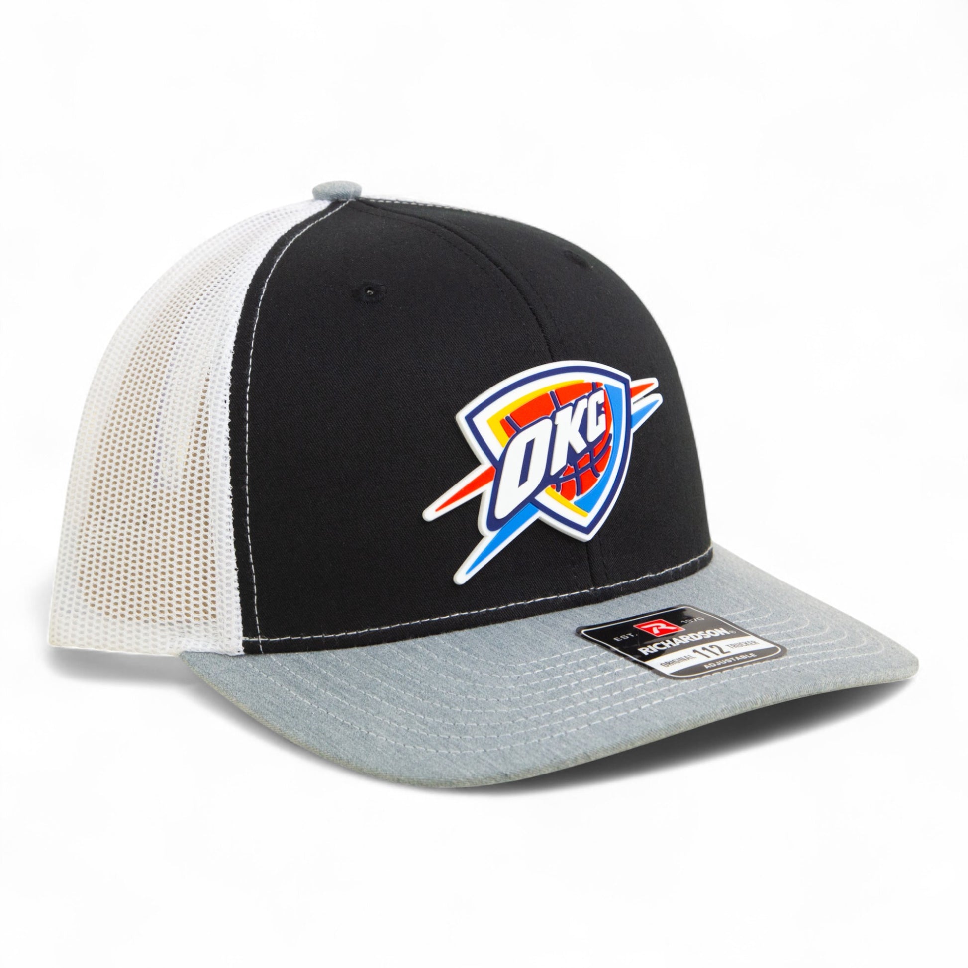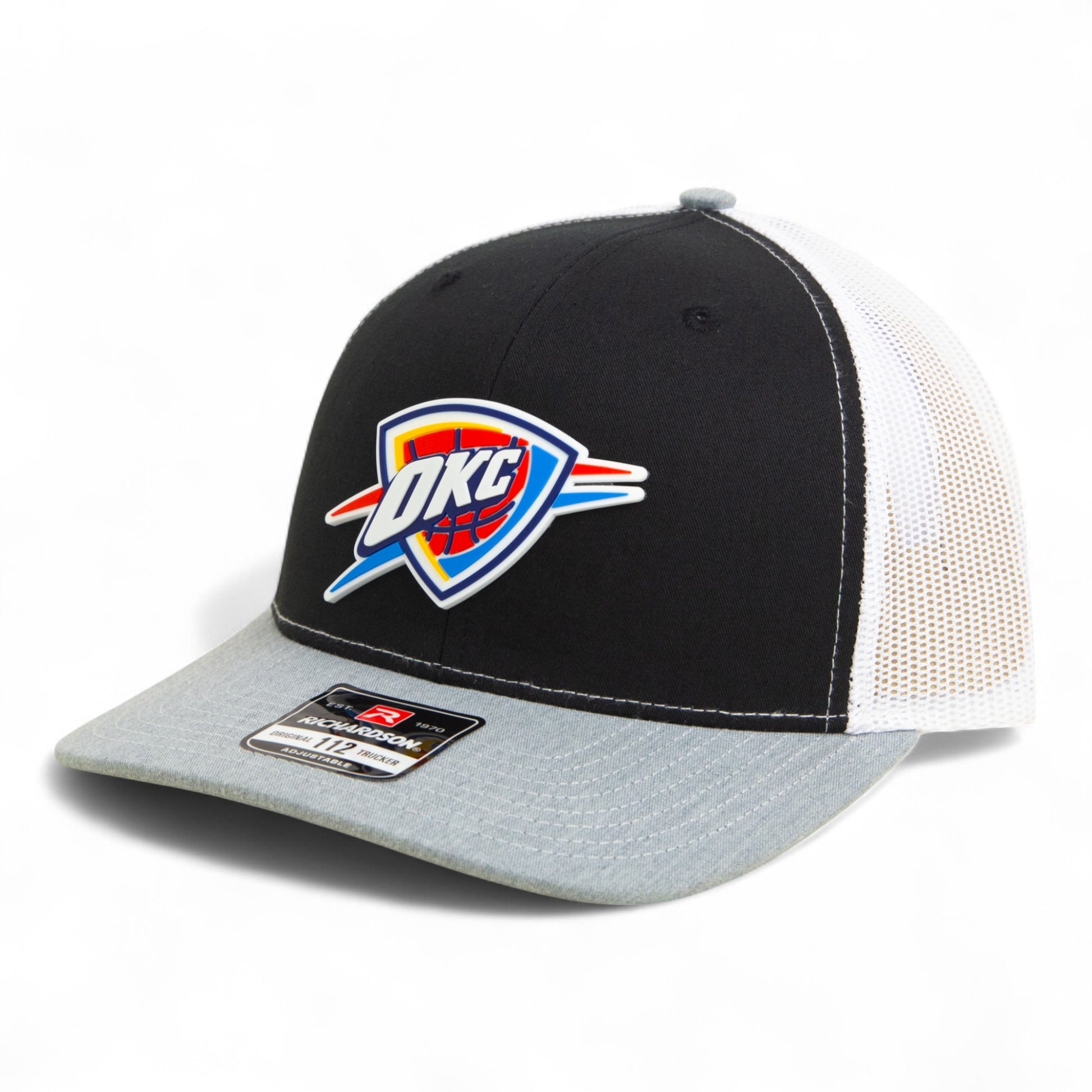 Oklahoma City Thunder Snapback Trucker Hat- Black/ White/ Heather Grey