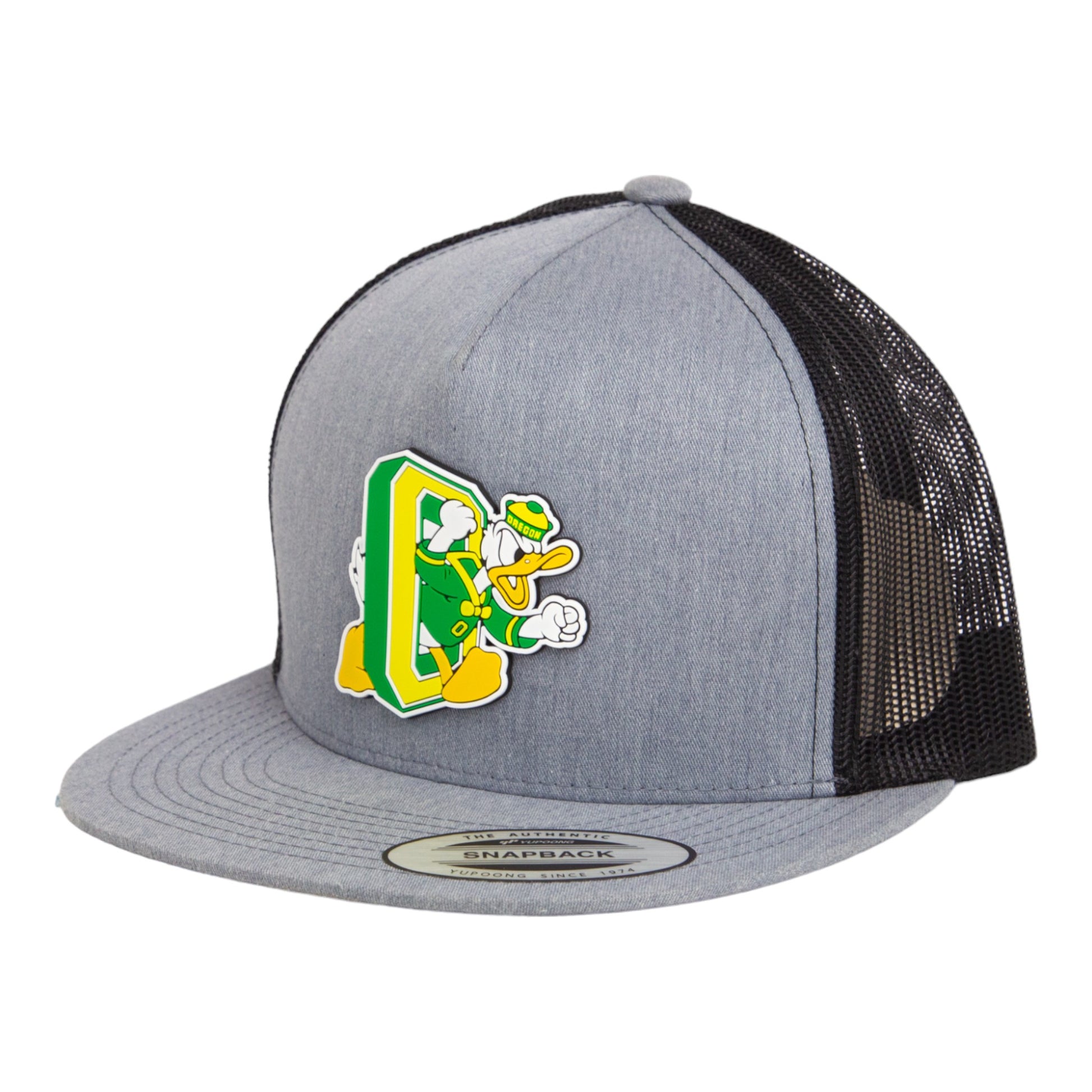 Oregon Ducks Retro 3D YP Snapback Flat Bill Trucker Hat- Heather Grey/ Black