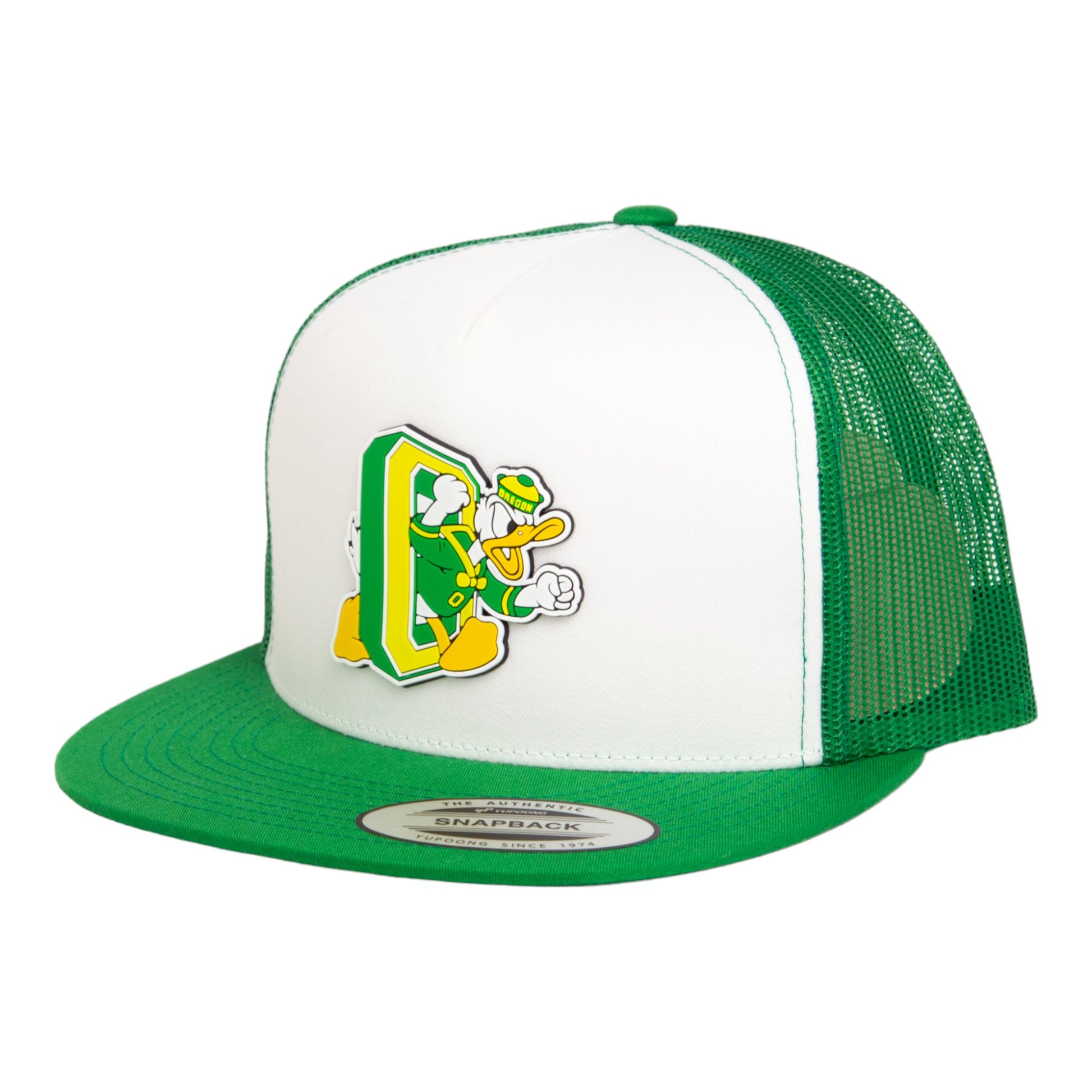 Oregon Ducks Retro 3D YP Snapback Flat Bill Trucker Hat- White/ Kelly Green