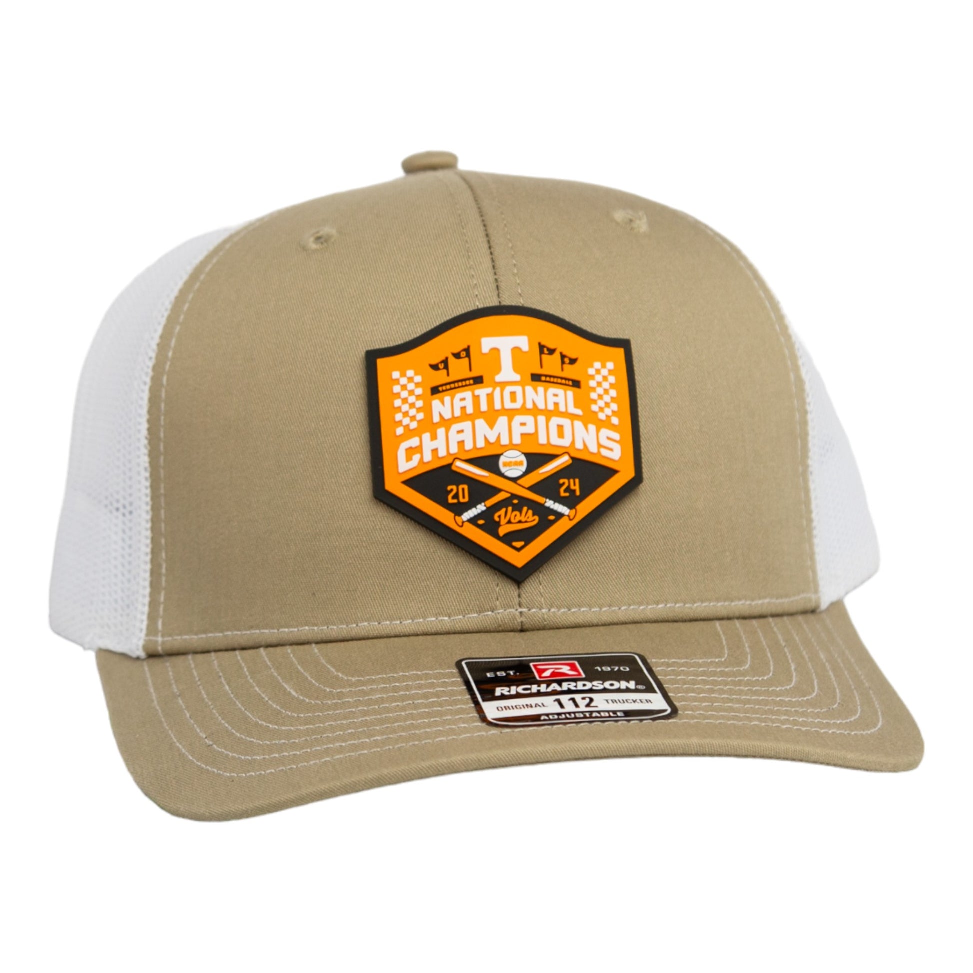 Tennessee Volunteers 2024 Men's College World Series Champions 3D Snapback Trucker Hat- Tan/ White