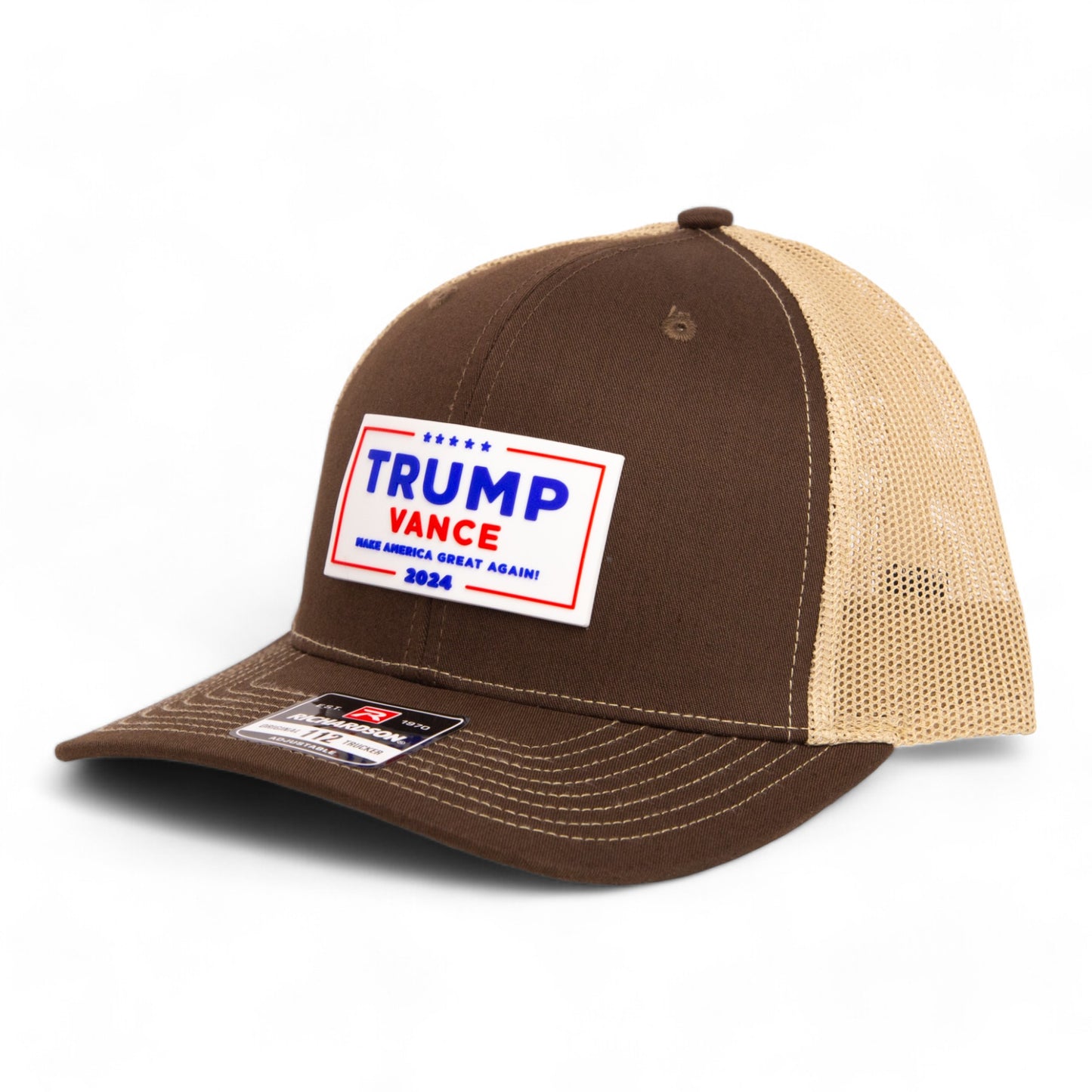 Trump Vance 2024 MAGA White Logo 3D Snapback Trucker Hat- Brown/ Tan